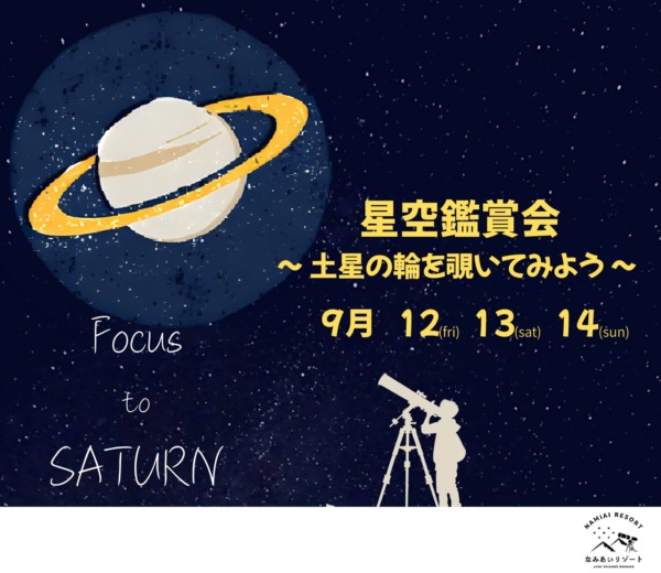 9月12日∼14日の21時の星空鑑賞会を特別な内容に変更しての開催になります。